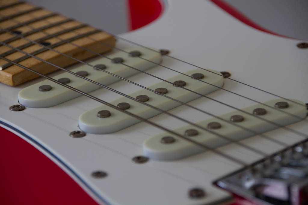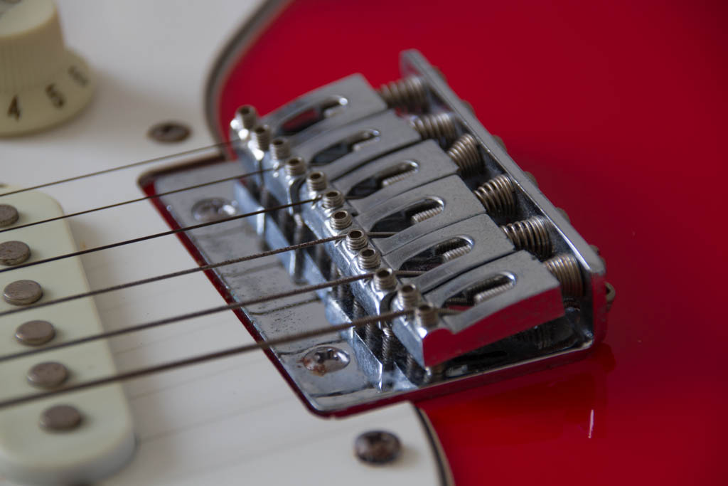 ブリッヂは一見トレモロのようですが、固定式です。弦高の調整やオクターブの調整はトレモロユニットと同じです。