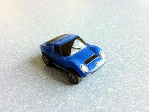 青色のボディーにグレーのホイール。ランチア・ストラトスに比べると若干車高が高い感じがします。