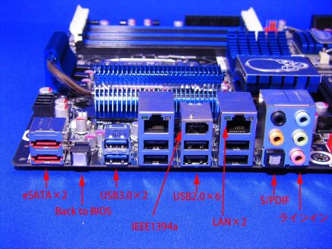 背面パネルはeSATAあり、USB3.0あり、IEEE1394aありと種類が豊富で良いですね。