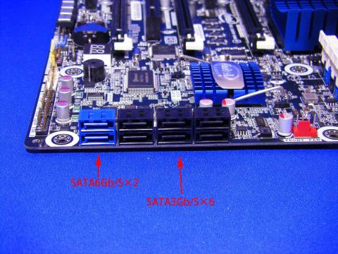 SATAコネクタはSATA6Gb/sが2つ、SATA3Gb/sが6つ、合計8つと昨今のマザーボードとしては標準的ですね。