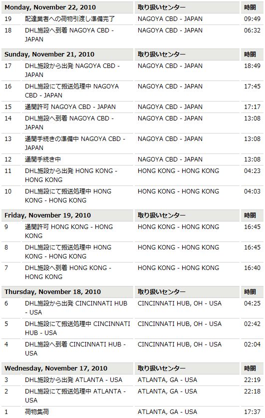 この後、佐川急便に引き渡されて、12:04名古屋支店を出て、15:00に配達完了。