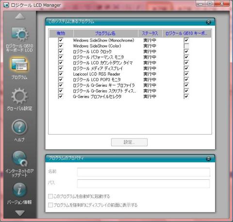 ただ、「ロジクール LCD Manager」でできたはずの「プログラムを自動でLCDに循環表示させる機能」がどこにもない!