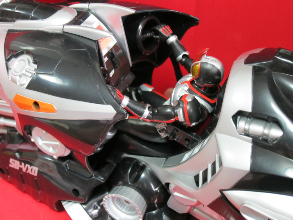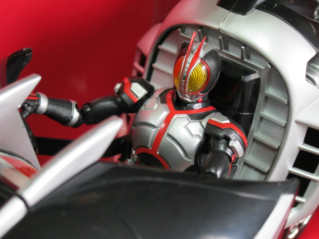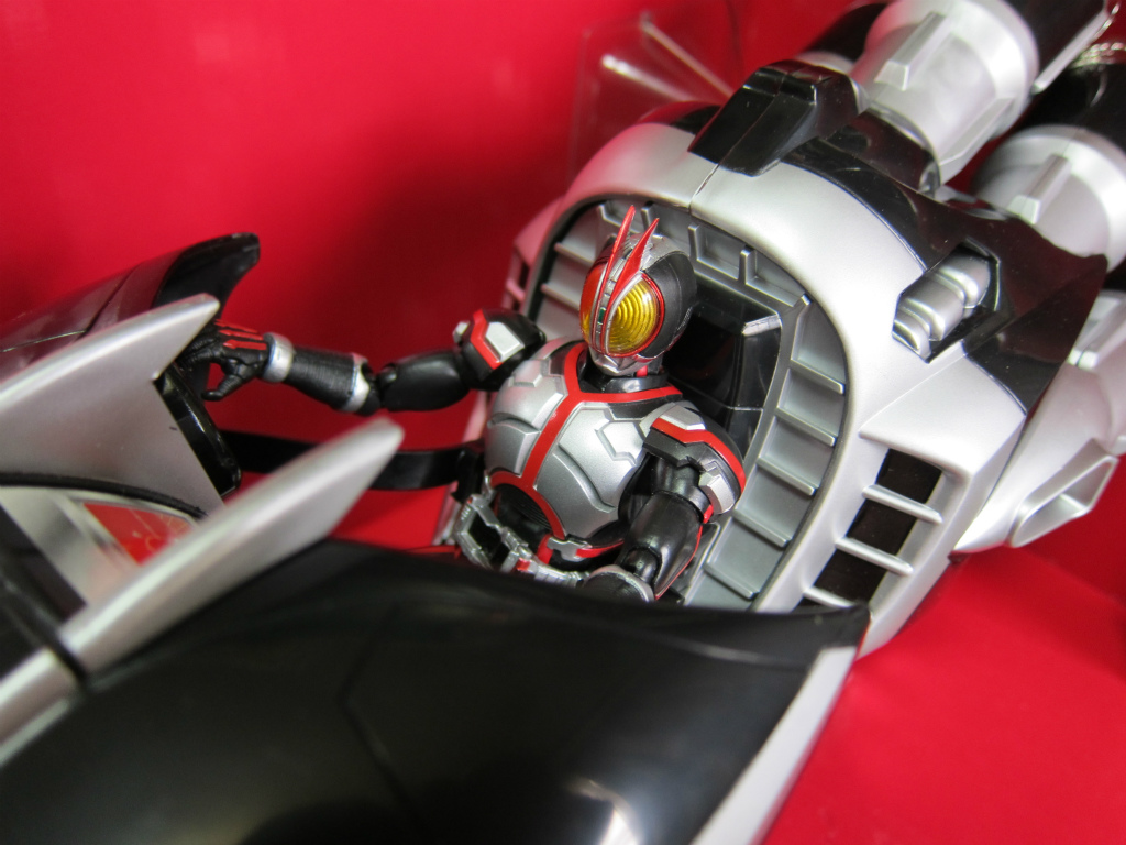 ジェットスライガーに元から付いているファイズのフィギュア(搭乗ポーズ固定)は、700円ソフビと同じくらいのサイズなのでフィギュアーツより大きいのですが、劇中のイメージはフィギュアーツを乗せた方が近いような気がします。