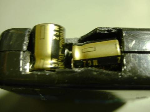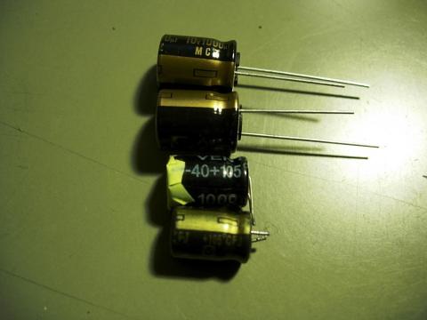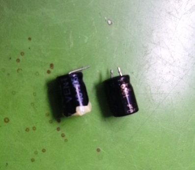 昨日、帰宅途中で寄ったサトー電気町田店にはなかったので、秋月通商のWebで1000μF/10Vの同等サイズが有りましたので、こちらを入手して2本とも1000μF/10Vに交換します。・・・実際は外した状態で動作が確認できていますので、正常な部品を取り付ければ修理は完了です。(*^_^*)