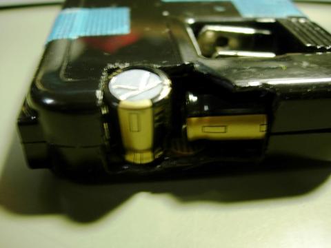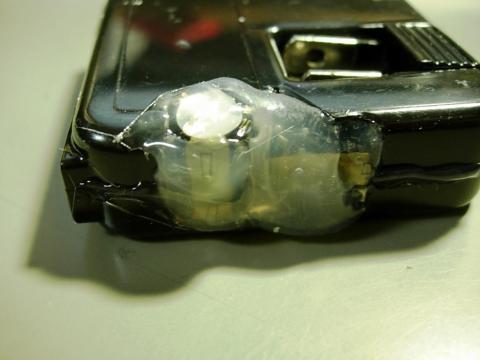 少し、サイズが合わなかったので、ブラケースをカットし、隙間をホットボンドで固定し、絶縁も兼ねています。