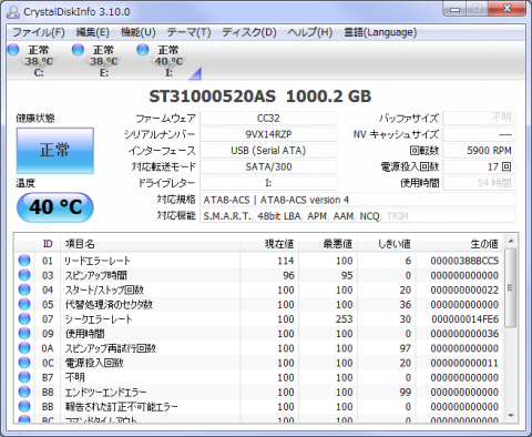 CrystalDiskInfo の結果で 40度ですが、筐体の温度はそれより僅かに低いぐらいです。