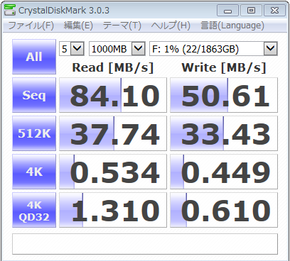 無線LAN付属の子機で接続し速度テスト行ってみたところ