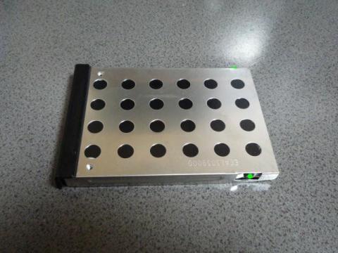 このHDDをSSDに載せ替え、ねじ2カ所を締めマウンタに固定したら、HDD取り外しと逆手順でノートPCにマウンタを取付、ねじ2カ所を締めることによりSSDへの換装は終了です。