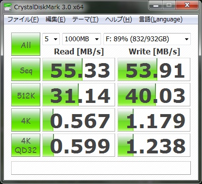 Rampage Ⅲ GENEでのUSB3.0検証時とほぼ変わらない速度が出ており