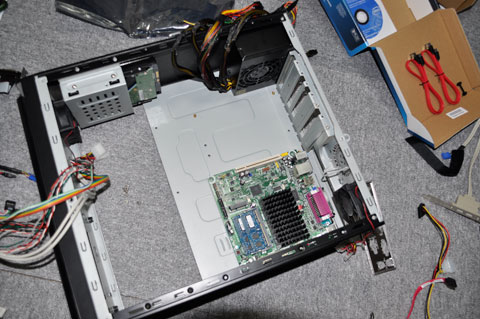 使い回しのSFX電源のケースに設置。M/Bちっさいです。