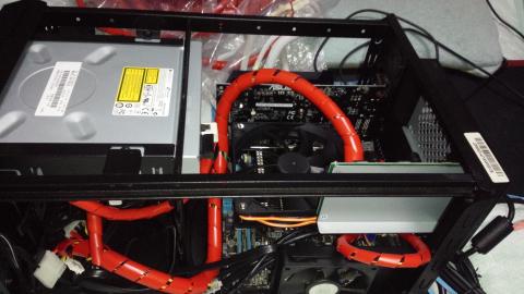 スパイラルチューブで巻いただけですが、これでファンに接触することもないだろうし、エアフローも改善されて、いい感じになったかと思います。