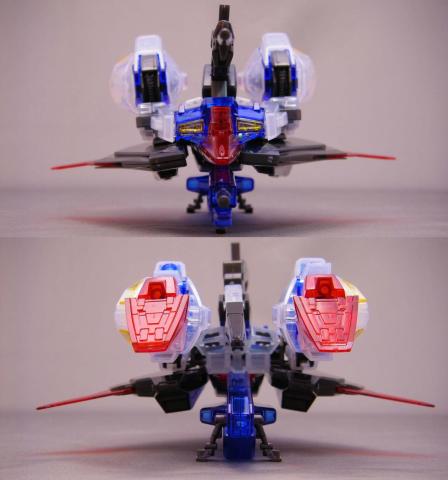 ウェイブライダー形態には挿し替えで行います。ハイメガランチャーが土台になっており、おそらくアクションベース等は使えないと思います。