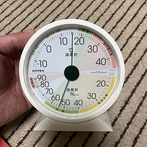 加湿器を置く様になって湿度管理もしてみようと思い温湿度計を購入。