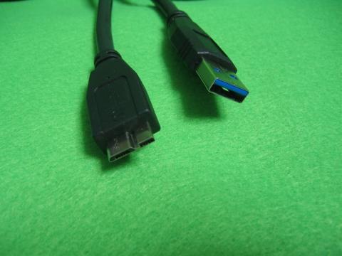 左側が本体ケース接続用 、右はブルーのUSB3.0仕様コネクター ケーブル長は80cm位です