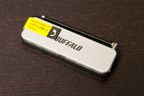 黄色いシールをはがしてB-CASカードを差し込みます。(B-CASカードは携帯のSIMカードと同じ大きさのミニB-CASカードを採用しているので、本体の小型化が可能になっています。)