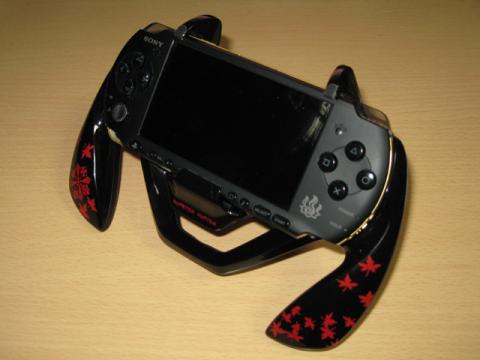 PSPに装着するアタッチメントグリップでソニー&カプコン公認グッズ。MHP3の発売日にあわせて販売開始されました。過去の製品から一部デザインを変更し、カラーリングはMHP3の世界観を意識したものになっています。
