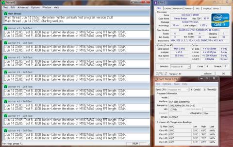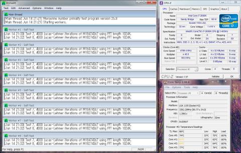 Prime95を回すとCPU-Z読みでのコア電圧は1.44Vまで上昇し危険域に突入。