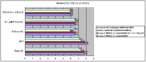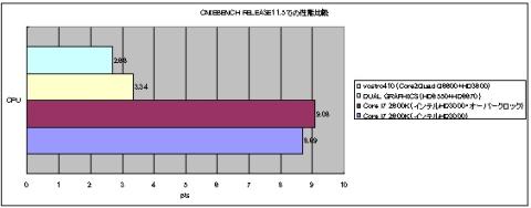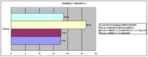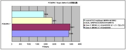 ※比較は「オンボード(インテルHDグラフィックス3000)」、「オンボード(インテルHDグラフィックス3000)オーバークロック」、「DUAL GRAPHICS(HD6550+HD6670)」、「vostro410(Core2Quad Q6600+HD3600)」で各々稼働させた状態になっています。