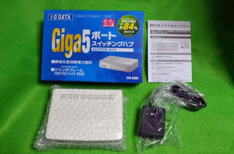 IO-DATA ギガビット5ポートスイッチングハブでACアダプター付です。