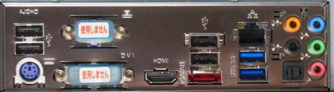 H67チップセットマザーボードなので、DVIやVGA端子が付いていますが出荷時はGPUが別途ついているので封印されていますね。