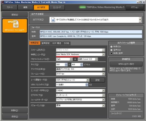 このように『Intel Media SDK Hardware』がエンコーダとして認識します。