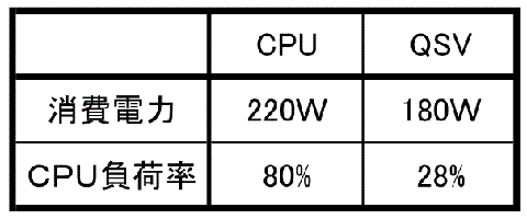 っと、CPUの占有率と消費電力をみる限り、明らかにQSVの方が有用であることが分かります。