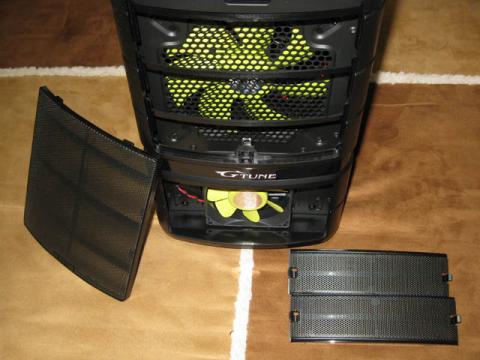 フロントの吸気ファンに設けられているメッシュ部分は簡単に取り外すことができます。