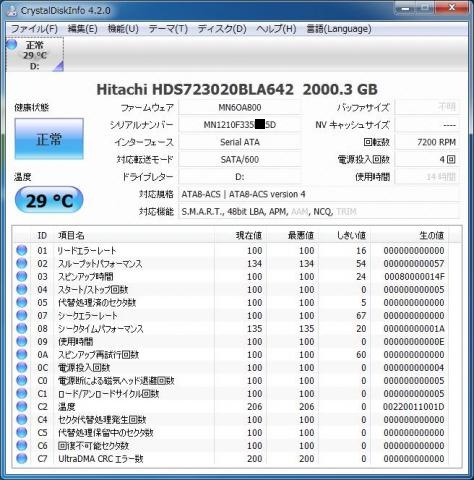 日立の3.5インチSATA 2TB