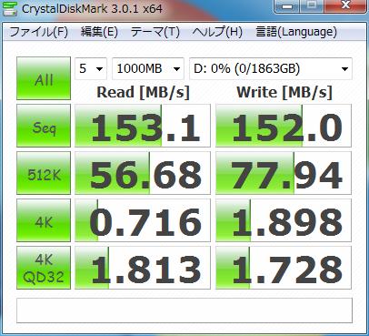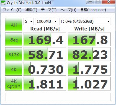CrystalDiskMarkでベンチマークをしてみたのですが、