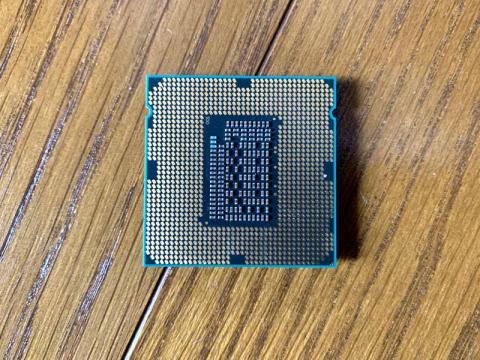 中古かつバルク品なので、この状態で小箱に入れられた形で届きました。かつてのCPUとは違い、ピンが底面に生えている形では無いので、これで問題は無いのでしょう。