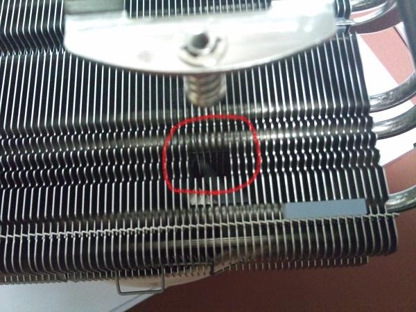 ヒートシンクの穴ですがこんな感じで2箇所空いていました。(画像1)
