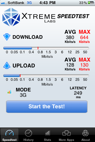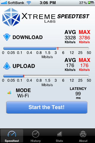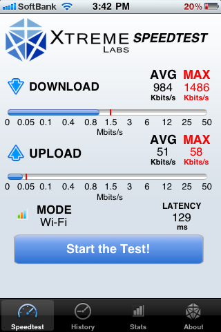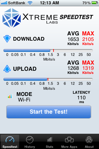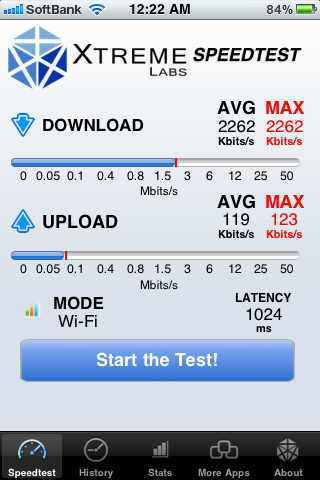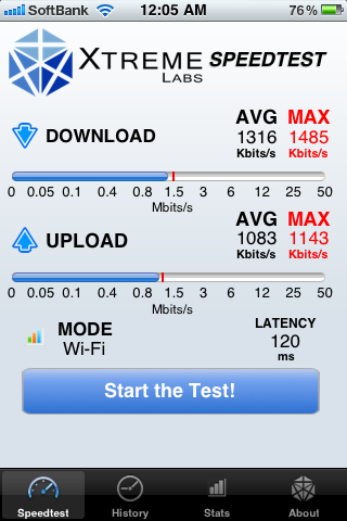 理論値は7.2Mから40Mにアップしていますが、場所によっては理論値とはかけ離れた計測地になるようです。いろいろな場所で使ってみて、結果をおいおい報告したいと思います。