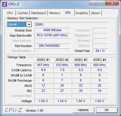 フリーソフトのCPU-Zを用いて細かい情報を取りましたので掲載します。