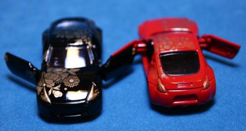昨年トミカは40周年記念としていろいろなモノを発売したり作ったりしていましたが、こちらは昨年のトミカ博会場で展示された「うるしぬりトミカ」のデザインをレプリカしたものです。