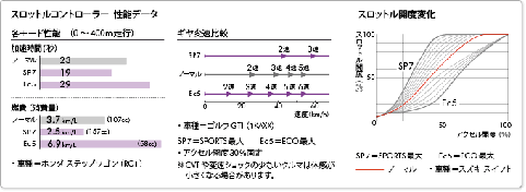 設定は、エコモード(ECO)・ノーマルモード(NOR)・スポーツモード(SP)の3つセットできます。