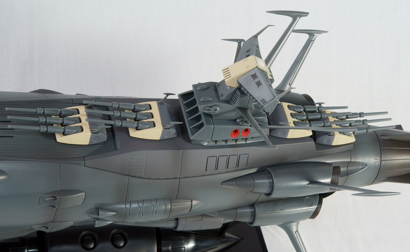 アンドロメダの3連装衝撃砲は設定上はヤマトの46cmよりおおきい50.8cmになってましたけれど、デザイン的にスリムな印象なので小さく見えますよね。