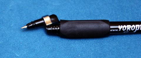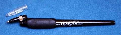本品は握った時に、上記の画像のようにペン先が垂直に近い角度になり書いた文字が見易くなるというものです。