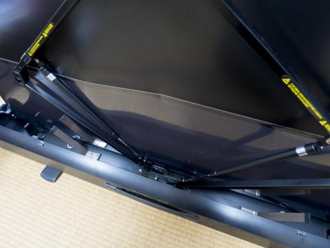 これにより机上に置いて白いスクリーン部だけ出したり、床置きの場合は必要な高さまで伸ばせます。