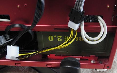 今回は8pinの延長スリーブケーブルでケース裏を取り回し、ケース下部にこのケーブルを装着した。