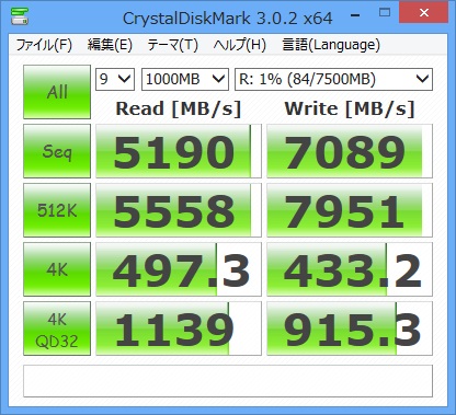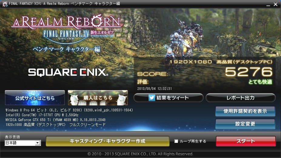 ベンチマーク中のデータ読み込み(Now Loading...が4回)は明らかに速い。以前のFF IVベンチならディスクのアクセス速度が出てたのに残念。実ゲームではロードの速さが活きるかも。