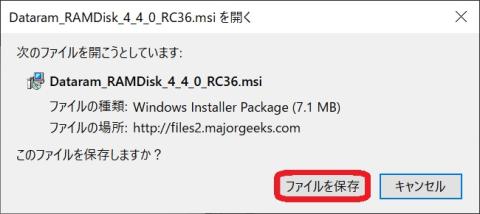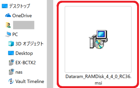 ダウンロードしたセットアップファイル(Dataram_RAMDisk_4_4_0_RC36.msi)からインストールします。