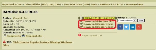 Windows 10 対応のフリーのRAMDiskソフトです。