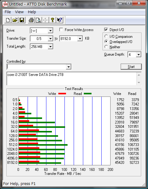 サーバーのデータドライブとして使用しているHDDは次のもの。シーケンシャルリードはだいたい100MB/s~120MB/sですので、ほぼスペックに近い速度になってるようです。