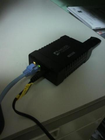 それではデバイスサーバーを接続します。一応マニュアルにはデバイスサーバーにUSBデバイスを接続後、デバイスサーバーにLANケーブルの接続と電源の投入になってます。