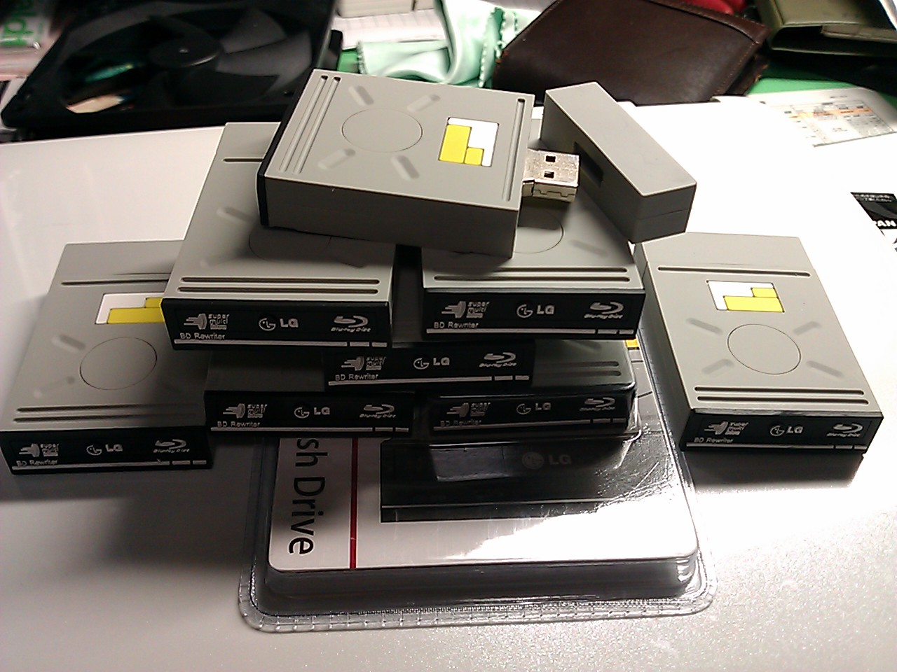 の子供。…それだけじゃいかんか。LG製BDドライブ…それもブラックにシルバーラインの入ったデザインのものを再現したUSBメモリ。なんかゴムと...