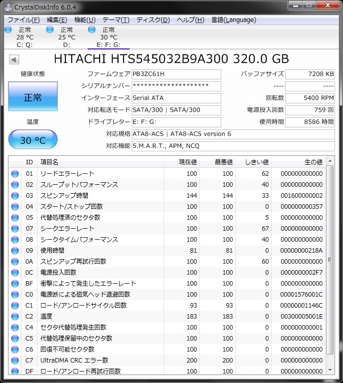 こちらの、PCからSSD換装により取り外しました。WesternDigitalのWD3200BPVT320GBになります。スペック容量 320GB回転数 5400rpmキャッシュ 8MBインターフ...