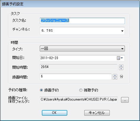 ちなみに、10分録画で約30MB。