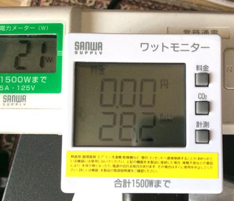 節電タップ コンセントには、ワットモニター自身の消費電力も足されて表示されるべきなのですが少なく表示されています。