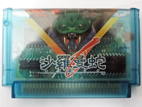 コナミから発売された、ファミリーコンピュータ用シューティングゲーム『沙羅曼蛇』です。