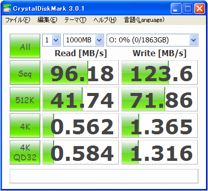 巷のうわさどおり、拡張パーティションにすれば速度は2TBの中ではトップクラス。